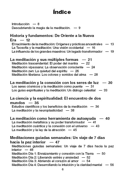 Sumérgete en un recorrido profundo que abarca desde la historia de la meditación hasta métodos específicos como la meditación trascendental, Vipassana, Zen y tibetana. Además, descubrirás cómo la meditación puede actuar como un puente hacia la conexión con seres de luz y guías espirituales, y cómo la ciencia moderna respalda sus beneficios. «Armonía Interior» te proporciona un enfoque práctico para integrar la meditación en tu vida cotidiana y transformar tu bienestar de manera tangible.
