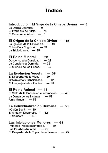 Desde el origen de la chispa divina hasta su evolución a través de los reinos mineral, vegetal, animal y humano, este libro presenta una narrativa fluida que te ayudará a comprender tu propósito de vida y la interconexión de todas las cosas en el vasto universo. Cada capítulo está diseñado para inspirar y guiarte hacia una mayor sabiduría y amor, ofreciéndote las herramientas necesarias para navegar las corrientes de la vida con profundidad y significado.