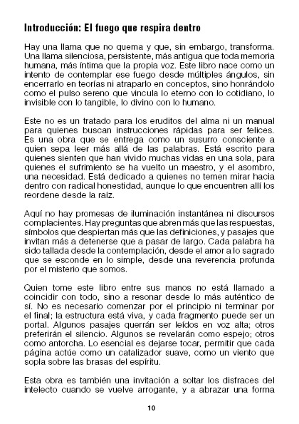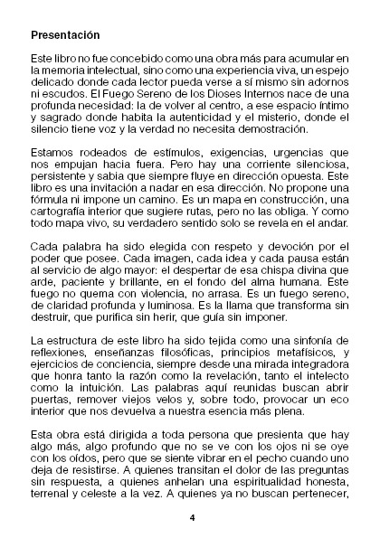 El Fuego Sereno de los Dioses Internos es una obra filosófica y espiritual que invita a una experiencia transformadora más allá de la simple lectura. Cada página abre un espacio de introspección donde la palabra se convierte en chispa y el silencio en maestro.
