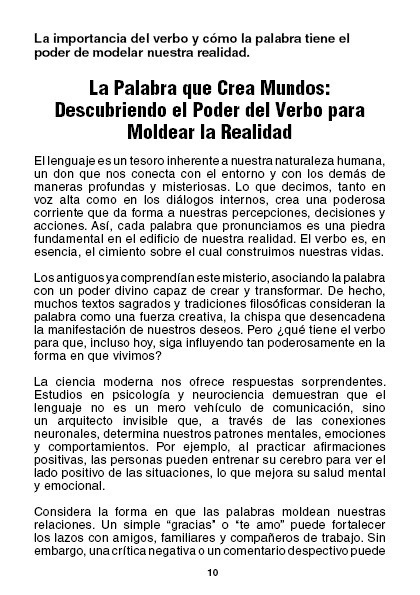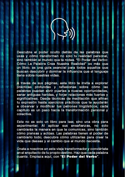 Este libro ofrece una mezcla de teoría y práctica, brindándote ejercicios concretos, como meditaciones, visualizaciones, y técnicas para modificar patrones lingüísticos. Aprenderás a implementar decretos y afirmaciones poderosas que te permitirán convertirte en el arquitecto de tu propio destino. Ideal para quienes buscan explorar la espiritualidad, mejorar sus habilidades de comunicación, o entender cómo el lenguaje afecta la mente humana.