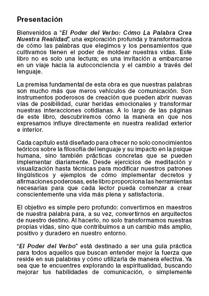 Sumérgete en un viaje transformador con «El Poder del Verbo: Cómo La Palabra Crea Nuestra Realidad«. Este libro es una guía profunda que explora cómo las palabras que elegimos y los pensamientos que cultivamos tienen la capacidad de moldear nuestras vidas. A lo largo de sus páginas, descubrirás cómo la expresión verbal no solo comunica, sino que crea y transforma nuestra realidad interna y externa.