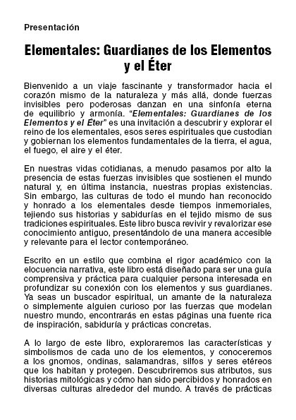 Disponible en formatos PDF, «Elementales: Guardianes de los Elementos y el Éter» es la guía definitiva para cualquier buscador espiritual, amante de la naturaleza o curioso por las fuerzas invisibles que modelan nuestro mundo.