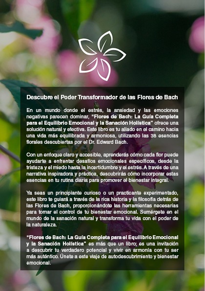 A través de una narrativa clara y profunda, descubrirás cómo cada una de las Flores de Bach puede ayudarte a enfrentar y transformar estados emocionales como el miedo, la incertidumbre, la tristeza y el estrés. Además, aprenderás a integrar estas esencias en tu vida diaria, creando rutinas de autocuidado que promuevan la salud integral de cuerpo, mente y espíritu.