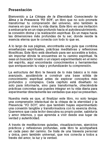 Embárcate en un viaje espiritual profundo con "La Chispa de la Eternidad: Conociendo tu Alma y la Presencia YO SOY", disponible en formato PDF. Conéctate con tu esencia divina y transforma tu vida.