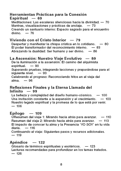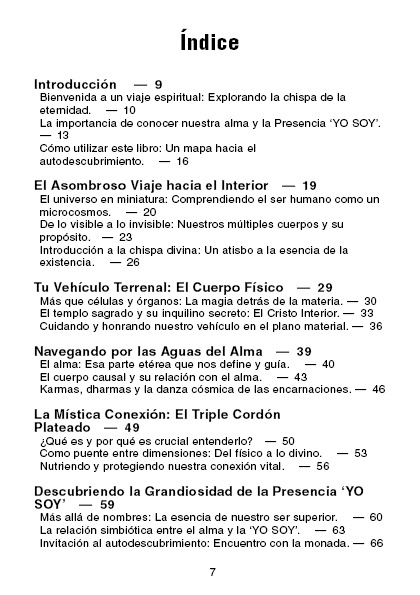 Este libro combina enseñanzas espirituales, meditaciones guiadas y prácticas concretas diseñadas para ayudarte a experimentar una transformación espiritual significativa. Aprenderás sobre la importancia de conocer tu alma, cómo conectarte con la Presencia YO SOY, y cómo estas enseñanzas pueden aplicarse en tu vida diaria para alcanzar un mayor bienestar, paz interior y sentido de propósito.